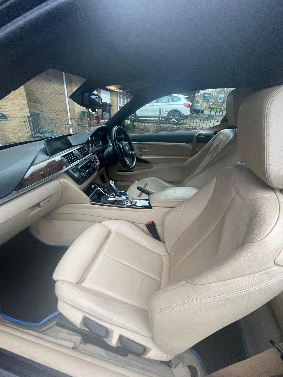 BMW 420i Coupe finished in black with cream leather interior. Full service history, 2 keys , 3 new tyres , New MOT, V5 present, Smooth automatic transmission and refined petrol engine. Drives exactly as it should and on 64,855 miles .well maintained example with full d a fresh MOT. Clean interior and exterior, no warning lights, no issue. Automtellite navigation Bluetooth (calls & audio) DAB radio ,Front & rear parking sensors ,Cruise control , Dual-zone climate control, Automatic headlights Automatic wipers , Electric windows & mirrors ,Alloy wheels, Split-folding rear seats , Large boot for a coupe. 07872627423